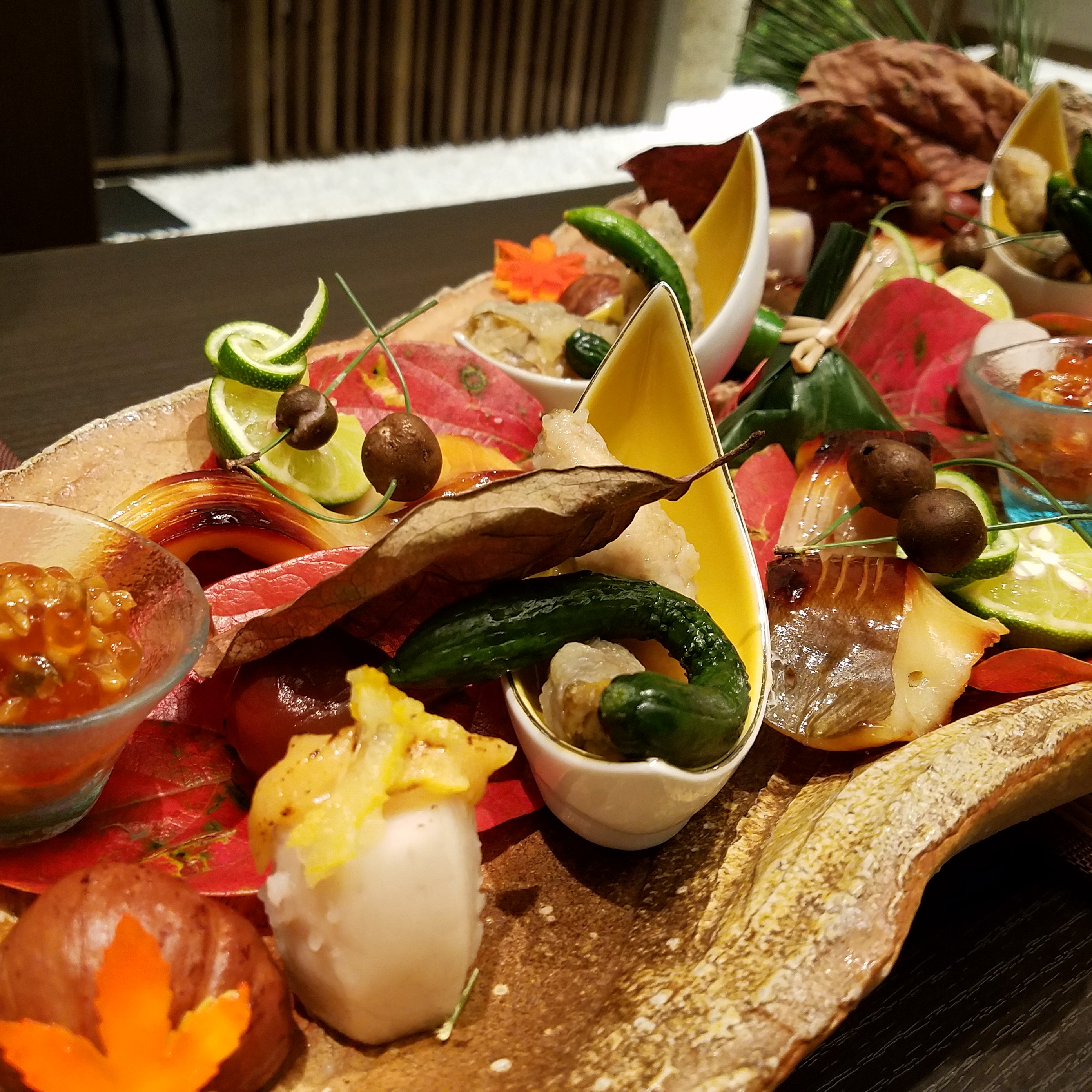 子持ち鮎南蛮漬 いくらもろみ漬 柚子海老芋浅漬